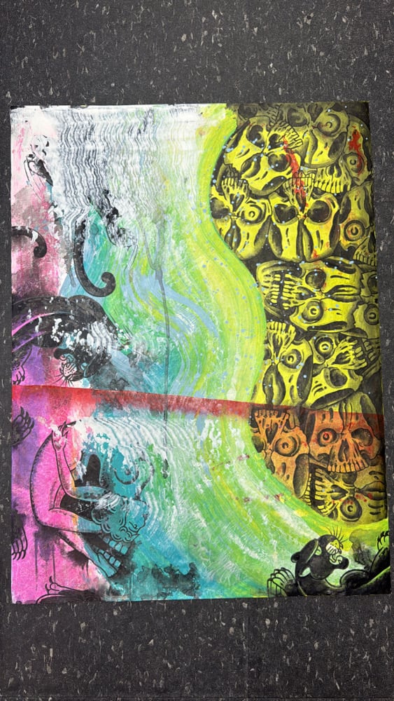 a split painting with Greg Christian acrylic on 18x24 piece of tyvek.